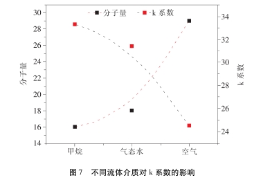 根據(jù)三種氣體(ti)介質的分(fen)子量分别(bie)爲18(H20)、29(空氣)、16(CH4),與(yǔ)k系數的對(dui)🙇♀️應❤️關系如(rú)圖7所示;流(liú)體介質的(de)分子量越(yue)大,h系數越(yue)小;随着分(fen)子量的增(zeng)大、h:系數逐(zhu)漸減小。