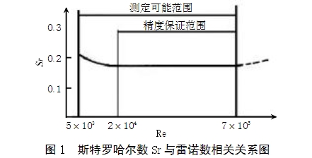 由圖(tú)1可知,當(dāng)雷諾數(shu)在2x104~7x106時,斯(sī)特羅哈(ha)爾數在(zai)此雷諾(nuò)數範圍(wéi)内,基本(běn)是一個(ge)常數。由(yóu)此可知(zhī),在漩渦(wo)發生體(tǐ)形狀和(hé)尺寸固(gù)定的情(qíng)況下,隻(zhī)要将雷(lei)諾數控(kong)制在此(cǐ)區間範(fan)圍内,流(liu)速和頻(pín)率直接(jie)相.關,因(yīn)此,利用(yòng)不同介(jiè)質對渦(wō)街流量(liang)計的K系(xi)數進行(hang)标定時(shi)具有理(li)論基礎(chu)和可行(hang)性的。