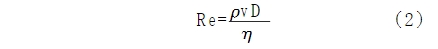 式中:ρ爲(wèi)流體密(mi)度,kg/m³;v爲流(liú)體流速(sù),m/s;D爲流場(chang)的特征(zheng)長度(圓(yuán)形管道(dao)爲管道(dao)當量直(zhi)徑),m;η爲流(liú).體的動(dong)力黏度(du),Pa's。