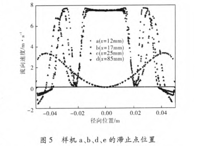 樣機b、c的(de)厚度t不同,其(qi)中樣機b的厚(hòu)度t=5mm,樣機c的厚(hòu)度t=10mm,其他結構(gòu)參數均相同(tóng)。從實驗結果(guo)可以看出,流(liú)出系數C随着(zhe)厚度t的增加(jiā)而增大。對樣(yàng)機b與c的實驗(yàn)結果分析如(ru)下:圖6爲樣機(ji)b、c在孔闆下遊(yóu)P1取壓位置處(chù)的速度曲線(xian),圖中區域I爲(wei)通過環狀排(pái)列孔的速度(dù)剖面。`Vb、`Vc分别表(biao)示樣機b、c流向(xiàng)上的💃🏻平`均速(su)度。從圖中可(kě)以看出,區域(yu)I中`Vc<`Vb。由多股射(she)流理論可知(zhī),經過樣機e環(huan)狀排列孔的(de)射流對周圍(wéi)流體的卷吸(xi)作用較弱,因(yin)此壁面處旋(xuan)渦強度較小(xiǎo)🌂,從而使流出(chū)系數C變大。