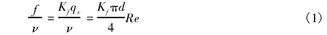 由式(shi)(5)~(7)可知,無論工(gōng)作介質是液(yè)體還是氣體(tǐ),渦輪流量計(ji)的标定誤差(cha)模型都包括(kuò)兩部分,僅和(hé)雷諾數有關(guan)的流體阻力(li)項,和體積流(liu)量qv有關的軸(zhou)承阻力項。Lee的(de)研究工作忽(hū)略了介質的(de)運動粘度對(duì)軸承阻力矩(ju)的影響,按照(zhao)Lee的原始模型(xíng),隻要雷諾數(shu)相同,無論動(dong)力粘度(對于(yú)液體)、工作壓(ya)力(對于氣體(ti))如何變化,僅(jin)考慮流體粘(zhān)性阻力的标(biao)定曲線一定(dìng)不會出現分(fen)散,而軸承阻(zu)力項恰怡是(shi)造成曲線分(fen)散的原因,對(dui)于液體介質(zhì),不同的動力(lì)粘度導緻曲(qu)線分散。對于(yú)氣體,需要進(jin)--步分析式(5)~(7)中(zhong)的軸承阻力(li)項。由式(1)可知(zhī),雷諾數通過(guò)運動粘度關(guān)聯體積流量(liàng),将式(5)~(7)中代表(biao)軸承阻力項(xiang)的共有部分(fen)作如下變換(huan):