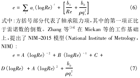 式(shì)(5)中4個含待定(dìng)系數的修正(zhèng)項依次分别(bie)爲:流體阻力(li)項,軸承靜态(tài)阻力項,軸承(cheng)粘性阻力項(xiàng),以及由于軸(zhou)向推力和轉(zhuan)子系統的動(dòng)态不平衡引(yǐn)起的軸承阻(zu)力項。最後一(yī)項影響很小(xiao),可以忽略不(bu)計。在研究中(zhōng)高壓氣體渦(wo)輪流量計時(shí)考慮到軸與(yu)軸承之間的(de)潤滑油處于(yu)層流狀态,認(rèn)爲渦輪軸承(chéng)阻力矩與其(qí)渦輪旋轉角(jiao)速度呈一階(jiē)線性關系,他(tā)們在“渦輪減(jian)速”實驗中發(fa)現,軸承阻力(li)對渦輪流量(liàng)計的影響在(zài)低雷諾數下(xia)尤其明顯,基(ji)于實驗數據(ju),提出了以下(xia)的模型: