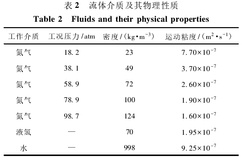 在測量推(tui)進系統的液(ye)氫流量過程(chéng)中,爲了降低(di)危險和實驗(yan)成本,使用高(gāo)壓氮氣模拟(nǐ)液氫标定一(yi)台1.5inch3渦輪流量(liang)計,實驗工況(kuàng)及物性參數(shu)如表2所示。