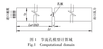 利用孔(kong)闆模型的軸對稱(cheng)性的特征,在圓柱(zhù)坐标系😍下建立它(ta)♌們的1/2實體模型,取(qǔ)壓方式采用D-D/2取壓(ya)其計算域⚽如圖❤️1所(suo)示.孔闆.上遊直管(guǎn)段長度爲20D,充足的(de)上遊管長能夠确(que)保液流在孔闆上(shàng)遊爲充分發展的(de)湍流流動.模型具(ju)體尺寸,其中D=12.3mm,β=0.247,Lu=246mm,Lt=494mm,t=2mm.