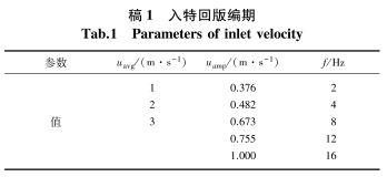文中所選用(yong)的流體介質爲常(cháng)溫狀态下的水.人(rén)口流✔️速設定爲某(mou)一-頻率下的正弦(xian)流動u=uarg+uamp·sin(2πƒt),選擇不同平(ping)均流速uarg、流速振幅(fú)uamp和振蕩🌂頻率ƒ參數(shù)作爲節流孔的人(ren)口流速,具體參數(shù)見表1.利用UDF功能将(jiāng)該自定義速⛷️度函(hán)數加載在模型的(de)速度人口.