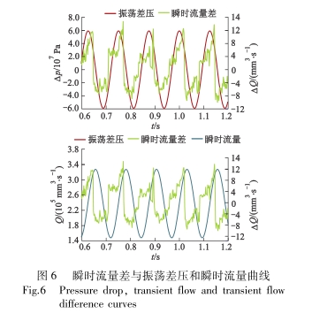 在振蕩流态(tài)下,孔闆前後回流(liú)區和旋渦域的大(da)小随人口流速變(biàn)化不斷改變,導緻(zhì)進出口流量存在(zài)㊙️.瞬時流量差△Q,如圖(tu)6所示.瞬時流量差(chà)表現爲複雜的周(zhou)期性波動,其波動(dòng)周期與差壓振蕩(dàng)周期相同,相位介(jie)于瞬時流量和差(cha)壓兩者之間,且稍(shāo)滞後于振蕩差壓(yā).當差壓增大至峰(feng)值點時,瞬時❗流量(liàng)差趨向其波峰,并(bing)在到達峰值點後(hòu)反向階躍.