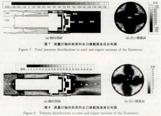 觀察圖5和(hé)圖6,當流體(ti)流經葉輪(lun)從後導流(liu)器流出渦(wo)輪流🙇♀️量計(jì)時,壓力梯(tī)度變化明(ming)顯,存在負(fù)壓區域并(bìng)造成很大(da)的壓降,在(zai)後導流器(qi)凸台及流(liú)量計出口(kou)處速度變(bian)化明顯,由(you)于氣流通(tōng)過後導流(liú)器後流道(dào)突擴,在後(hòu)導流器背(bèi)面形成明(ming)顯的低速(sù)渦區,産生(shēng)漩渦二次(ci)流。
