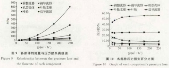 2)分析各(ge)部件對壓(yā)力損失的(de)影響,其壓(yā)力損失與(yu)流量💞成二(er)次函數關(guan)系.後導流(liu)器相對于(yú)其他部件(jiàn)是壓力🤩損(sǔn)失的主要(yào)因素,約占(zhàn)總壓力損(sun)失的一半(ban),随着流量(liang)🏃♀️的增加其(qi)壓力損失(shi)占總壓力(lì)✉️損失的比(bǐ)例上升了(le)12.12%.葉輪支座(zuò)的♋壓力損(sǔn)失約占總(zǒng)壓力損失(shi)的1/4,其壓力(li)損失比例(lì)随流量的(de)增加基本(běn)不變.随着(zhe)流⛷️量的增(zēng)加葉輪産(chan)生的壓力(lì)損失比例(li)降幅明顯(xian).