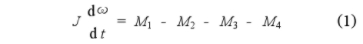 式中J一葉(ye)輪的慣性(xìng)矩;dω/dt一葉輪(lun)的旋轉加(jiā)速度;M1一流(liú)體驅動力(li)矩;M2一黏性(xìng)阻力距;M3一(yī)軸承摩擦(cā)阻力距;M4一(yī)♻️磁阻力距(jù)。