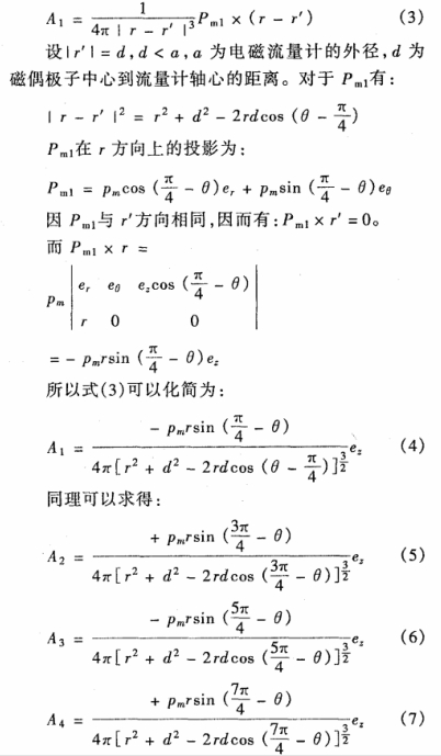 磁(cí)場解析式的推(tui)導和磁場仿真(zhen)研究結果。在長(zhǎng)筒🏃🏻♂️電磁🆚流量計(jì)的假設下,從磁(ci)偶極子的磁場(chǎng)理論出發,創新(xīn)性地推導出外(wài)流♌式電磁流量(liang)計的磁場解析(xi)式。在磁場解析(xī)式的基礎上,利(lì)用MATLAB的數值分析(xī)方法對外流🏃♂️式(shì)電磁流量計和(he)油管所構成👨❤️👨的(de)環形空🤩間中磁(ci)場的🔞分布情況(kuang)進行仿真研究(jiu)。研究結果表明(míng),在環形空間中(zhong)磁場呈規律性(xing)的對稱分布,四(si)個磁極附近🈲磁(cí)場強☂️度的值相(xiàng)對較大,其它位(wei)置磁場強度的(de)值相對較弱。