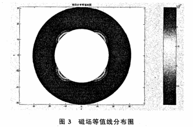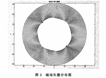 利用(yong)MATLAB數值分析方法(fǎ)對式(15)進行編程(cheng)求解,得到了圖(tu)2磁場矢量分✂️布(bù)圖和圖3磁場等(děng)值線分布圖。圖(tu)2中箭頭的指向(xiang)代表♊了磁感應(yīng)強度即磁場的(de)方向,它是由式(shi)(15)中♋沿e,方向(半徑(jìng)方向)和沿eo方向(xiang)(垂直于半徑方(fāng)🤩向)的礅感應強(qiang)度共💰同作用的(de)結.果。由圖2可以(yǐ)直觀看出在外(wài)流式電磁流量(liang)計和油管構💜成(chéng)的環形空間中(zhong)磁場呈規律性(xìng)的對稱分布。圖(tú)3中:色标顔色從(cóng)紅色變爲藍色(se)表示磁場強度(du)由強逐漸變弱(ruo)。由圖3可以直觀(guan)看出在外㊙️流式(shi)電磁流量計和(hé)油管構成的環(huán)形空間中磁場(chang)呈🌏規律性的對(dui)稱分布;在🌍四個(ge)🤟磁極附近的磁(ci)場♻️強度的值很(hěn)大,沿着徑向迅(xùn)速衰🌈減。.由圖2和(hé)圖3可以知道:在(zai)環形空間中,磁(ci)場呈規律性的(de)🔆對稱分布,四個(ge)磁極附近磁場(chǎng)強度的值相對(duì)😍較大,其它❤️位置(zhì)磁場強度的值(zhi)相對較弱。