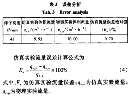 由上(shàng)述數據分析可(kě)知,對于浮子在(zài)41mm高處時的三維(wei)湍流🐅流💞場進行(hang)仿真可得到設(she)計要求的流量(liang)上限值.此🛀🏻位置(zhì)🚶♀️處浮✂️子受力平(ping)衡誤差絕對值(zhi)爲2.01%,傳感器物理(li)實驗獲得的示(shì)值😘刻度流🌈量與(yǔ)通過湍流數值(zhi)模拟進行♻️流場(chǎng)仿真實驗獲得(dé)的仿真流量值(zhí)較爲📱接近,仿真(zhēn)流量誤差絕對(dui)值爲0.70%.因此,浮子(zǐ)受力平衡度誤(wù)差法确🛀🏻定🔞仿真(zhēn)計算精度獲得(de)了較爲理想的(de)效果.