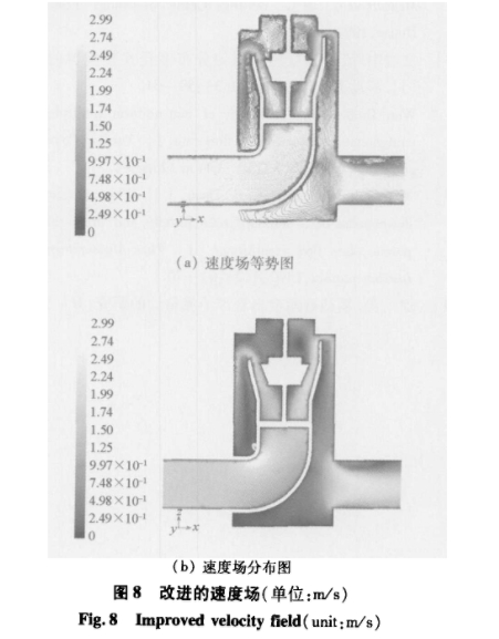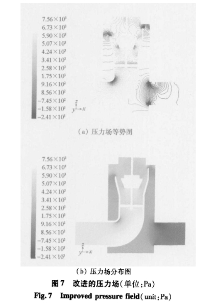 改(gai)進結構後的仿(pang)真結果如圖7和(he)圖8所示,由圖可(ke)知:①改進結構🐇後(hou)流場的壓力分(fèn)布得到改善,浮(fu)子組件🌈受力👉接(jie)近平衡,但是,由(yóu)于整流器的引(yin)人,導緻了整流(liu)器前後壓差增(zeng)大,帶㊙️來比較🍓大(da)的壓損;②改進結(jie)構後流場的🈚速(sù)度分布比較均(jun)勻,特别是使浮(fu)子組件周.圍沒(méi)有太大的速度(dù)差,同樣由于整(zhěng)流器的使用,也(ye)使浮子組件的(de)前流場更加複(fú)雜.