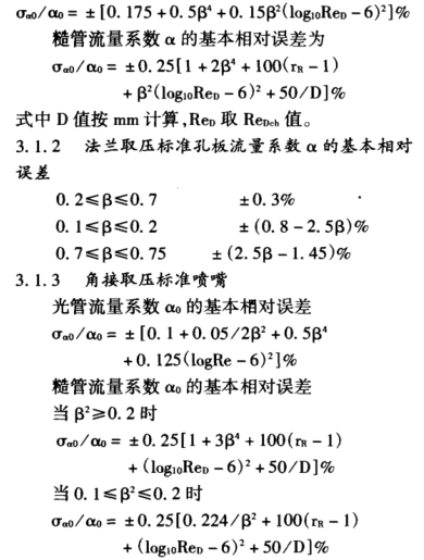 3.1.1角接取壓标(biāo)準孔闆在節(jiē)流件上遊側(ce)的管道沒有(yǒu)管🔆徑👄突🏒變❗,節(jiē)🌈流件的安裝(zhuāng)經檢驗其偏(piān)心率≤1/10x0.015D(1/β-1),環室(或(huò)夾緊環)的開(kāi)孔直徑與管(guan)道内徑相等(děng),在此條件下(xia),角接取壓孔(kǒng)闆.的光管流(liu)量系✊數α0的基(jī)本相對誤差(cha)爲: