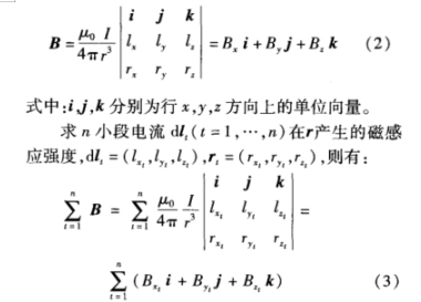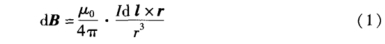 式中:μ0爲真空(kōng)的磁導率;I爲(wei)電流強度;dI爲(wèi)導線元的長(zhǎng)度矢量;r爲📐電(diàn)💯流元到P點的(de)徑矢;r爲電流(liú)元到P點的距(ju)⭐離。