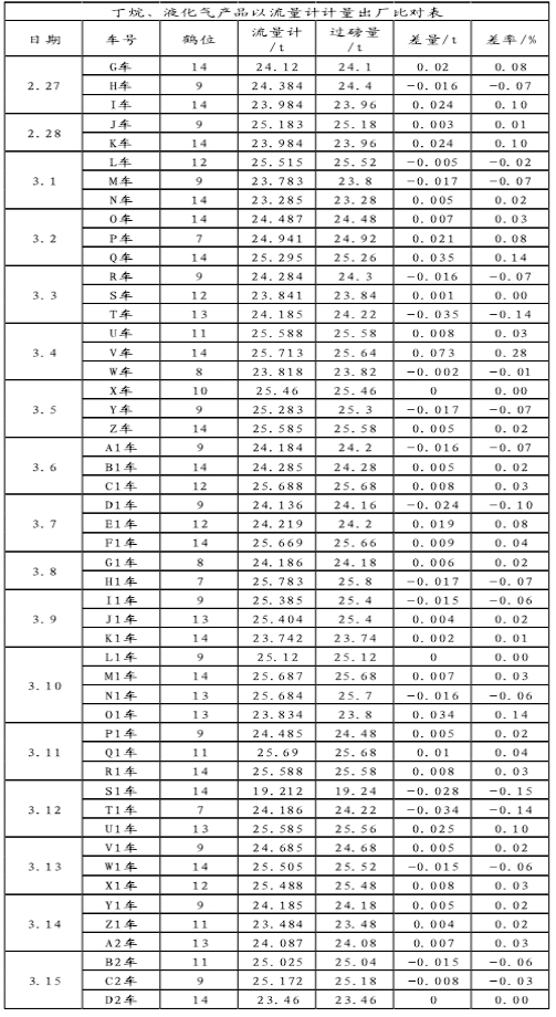 總共21d,63條數據,流(liu)量計與汽車衡(heng)的差率爲0;僅有(you)一條數💘據因14鶴(he)🐇位流量計檢定(dìng)回裝時管線内(nei)有未排除氣體(ti),造成🚩差率0.28%;在後(hòu)👄續比對中,14鶴位(wèi)回歸正常,數據(jù)較爲理想。 5.結論(lun) 在液化氣出廠(chang)由過磅計量向(xiang)流量計計量轉(zhuan)變時,在🎯實際的(de)操作過程中,需(xū)要注意減少泵(beng)抽空現象;首車(che)起輸時,注意要(yào)使用小流量裝(zhuāng)車,避免因爲壓(yā)力過大産生氣(qi)化現象;減少或(huò)者避免裝車中(zhong)斷現象,如果條(tiáo)件允許,建議車(che)輛全部使用上(shang)🌏裝方式裝車;杜(du)絕人工幹預批(pi)控器,要讓系統(tǒng)自🛀停,減少水擊(ji)現象。同時科氏(shì)質量流量計對(duì)🌐于零點的要求(qiú)也較👨❤️👨高",在日常(chang)維護中要密切(qiē)關注零點變化(huà),一般應每季🤞度(dù)定期檢查--次;在(zài)日常使用過程(cheng)如💛遇工藝有大(da)的調整(介質變(biàn)化、壓力變化、溫(wēn)🆚度變化等),應立(li)☂️即檢❓查零點變(bian)化情況,如超過(guò)生産廠家限定(ding)的指标,應重新(xīn)調試[81。質量流量(liang)計相🧑🏾🤝🧑🏼較于傳統(tong)的用汽車衡滿(man)🚶車過磅減去空(kong)車過磅量計算(suan)👨❤️👨淨重的交接計(jì)量方式,不但簡(jian)化了裝車的操(cao)作過程,不受大(da)🏃🏻♂️風、下雨等環境(jìng)的影響,而且計(jì)量精度更高,能(néng)夠顯著提高産(chan)晶出廠的速度(dù)與總量。
