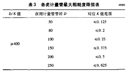 由于(yu)标準隻(zhi)對D/K≥400的情(qíng)況提出(chu)了規定(ding),因此現(xiàn)場在用(yòng)✊的部分(fen)計🤞量管(guan)是無法(fǎ)按實際(jì)粗糙度(du)進行修(xiū)正的。就(jiu)目前采(cǎi)用的積(ji)算軟件(jiàn)📧而言,K值(zhi)最大也(yě)隻能修(xiu)正到D/K=400的(de)情況,表(biao)3列出了(le)氣田内(nei)目前常(chang)用的幾(jǐ)種測量(liàng)管可以(yǐ)進行修(xiu)正的粗(cū)糙度值(zhi)🚩。