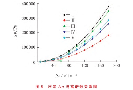 壓差△p與雷諾數(shù)的關系曲線見圖(tú)8。