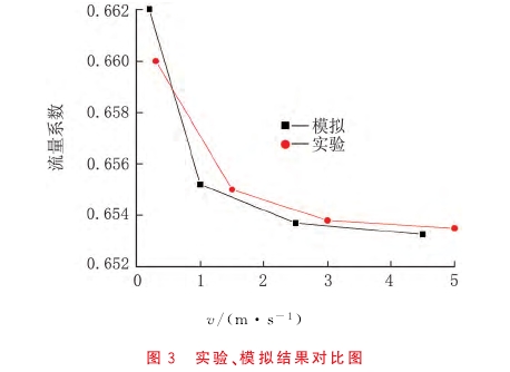 水(shui)由離心泵從水箱(xiang)抽出後,經過孔闆(pan)流量計,通過🌈彎🐅管(guǎn)再流回⛱️水箱。其中(zhōng)孔闆流量計爲标(biāo)準型,管道🤟内徑40mm,孔(kǒng)闆口徑35mm,孔闆厚度(dù)5mm。在不同的閥門開(kāi)度下,測試孔闆流(liu)量計✌️壓差,計算流(liu)量及流量計流量(liàng)系數。實驗、模拟結(jié)果對比見圖3。