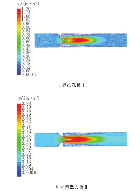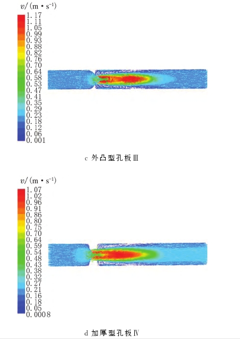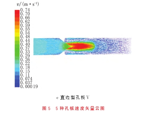 以ʋ=0.2m/s時孔闆的(de)模拟結果爲例,各(gè)孔闆流量計的速(su)度矢量雲🌈圖見圖(tú)5.