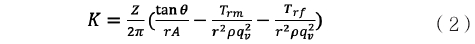 式(2)中:Z一(yi)渦輪葉片數;θ一(yi)流體流動方向(xiàng)與葉片的夾💞角(jiǎo);r一葉片😄的平均(jun1)半徑;A一流通截(jie)面積;ρ一流體密(mi)度;Trm一機械摩擦(ca)阻力矩;Trf一流體(ti)對渦輪的阻力(li)矩。