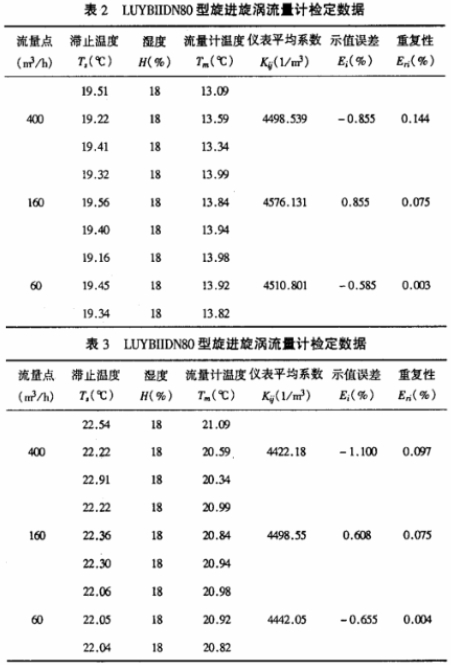 氣體流(liu)量計離線(xian)檢定過程(cheng)中,檢定室(shi)的環境溫(wen)度及滞☂️止(zhǐ)容器的溫(wēn)度有時候(hou)無法保證(zheng),比如由于(yu)天熱或天(tiān)冷,有的檢(jian)定員會将(jiang)檢定室房(fang)門關上,并(bing)開啓空調(diào),造成檢定(dìng)介質的流(liu)通不通暢(chàng);還有的檢(jian)定室滞止(zhǐ)容🐇器安裝(zhuāng)位置距離(li)窗✏️戶較近(jin),陽光可以(yǐ)直🈲射容器(qi),在窗戶上(shang)沒有任何(he)遮陽措施(shī)的情況下(xià),滞止容器(qi)的溫度明(ming)顯高于正(zhèng)常條件下(xia)的滞止容(rong)器溫度。通(tōng)過對氣體(tǐ)流量計在(zai)不同條🌈件(jian)下進行試(shì)驗分析,并(bìng)選取了具(jù)有🏃♂️代表性(xing)的LUYBIIDN80型旋進(jin)💚旋渦流量(liang)計✏️某次檢(jiǎn)定數據(大(dà)氣壓力爲(wèi)101.81kPa,環境溫度(dù)爲13.00℃,滞止容(róng)器平均溫(wēn)度爲15.33℃)如表(biǎo)1所示。