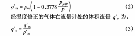 經濕度(du)修正的氣(qì)體在流量(liang)計處得密(mi)度ρ'm爲: