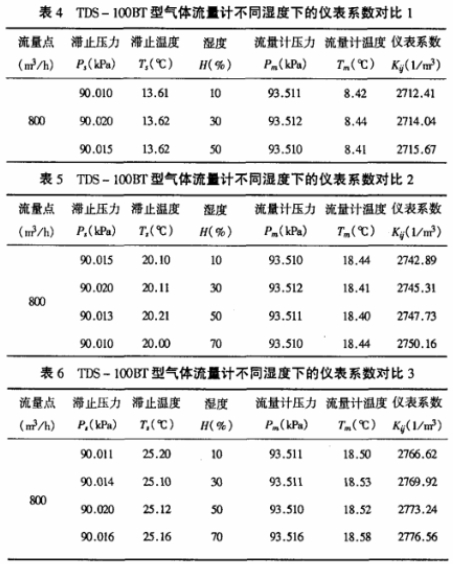 由于(yu)環境條件(jian)的影響,不(bú)同時間段(duan)對流量計(ji)進行檢定(ding),其環境濕(shī)度是不一(yī)樣的。我們(men)以TDS-100BT型氣體(ti)流量計爲(wei)例,針對某(mǒu)一流量點(diǎn),在不同濕(shi)度、不同溫(wen)度下分别(bie)進行試驗(yàn),通過檢定(ding),得出的試(shi)驗數據如(ru)表4~表❤️6所示(shi)。