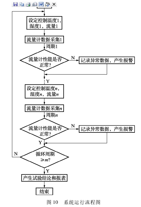 控制系統軟件(jiàn)包括流量計運(yùn)行控制、模拟環(huan)境控制、流量計(ji)檢定、流量計檢(jian)測、文檔管理等(děng)部分組成,整體(tǐ)軟件運行流程(cheng)如圖10所示。