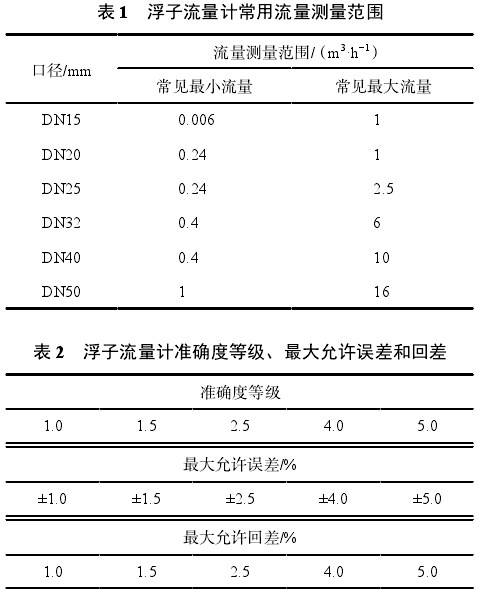 浮子流(liú)量計被(bèi)廣泛應(yīng)用于小(xiǎo)管徑、低(dī)流速測(cè)流領域(yu)。以液體(ti)爲🐆例,口(kou)徑10mm以下(xià)玻璃管(guǎn)浮子流(liu)量計滿(man)度✌️流量(liàng)的名義(yì)管徑,流(liu)速隻在(zài)0.2~0.6m/s之間,甚(shèn)至低于(yú)0.1m/s8。常用浮(fú)子流量(liàng)計口徑(jìng)爲DN15~DN50,對應(yīng)的流量(liàng)範圍和(hé)♻️精度等(děng)級分别(bié)見表1和(hé)🎯表2。