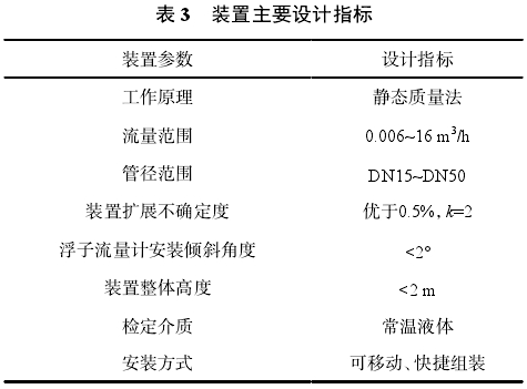 根據(ju)常用流(liú)量計口(kou)徑、精度(du)等級和(he)流量測(cè)量範圍(wéi)進行裝(zhuang)置設計(jì),具體設(she)計指标(biāo)見表3。裝(zhuang)置設計(jì)采用測(cè)量精度(du)較高的(de)靜态質(zhi)量法,流(liu)量範圍(wéi)0.006~16m2/h,滿足常(chang)用🐕口徑(jing)DN15~DN50液體浮(fú)子流量(liàng)計檢定(dìng)需求。浮(fu)子流量(liang)計檢定(ding)裝置的(de)擴展不(bú)确定⭐度(du)應優于(yú)被檢流(liú)量✌️計最(zuì)大允許(xu)誤差的(de)1/2凹最高(gāo)精度等(deng)級浮子(zǐ)流量計(jì)爲1.0級(表(biǎo)2),因此組(zǔ)合裝置(zhi)⛹🏻♀️的擴展(zhǎn)不确定(ding)度🙇🏻應優(yōu)于0.5%。爲保(bao)證測量(liang)正确率(lǜ),浮子流(liu)量計安(ān)裝傾斜(xie)角度應(yīng)<2°。爲了方(fāng)便裝置(zhì)的移動(dong)、拆卸和(he)高效組(zǔ)裝,整套(tào)裝置高(gāo)度應不(bú)超🏃♀️過2m。