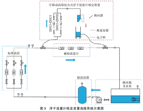 浮子流(liu)量計檢(jian)定裝置(zhi)和液體(tǐ)流量裝(zhuāng)置連接(jie)後的系(xi)統示意(yì)圖如圖(tu)3,組合裝(zhuang)置由儲(chǔ)水系統(tong)、水源循(xún)環穩壓(yā)系統🍉、變(biàn)頻調速(su)系統、裝(zhuāng)夾表系(xi)統、水流(liu)換向系(xi)統、計算(suàn)機控制(zhì)系統、标(biāo)準器和(he)儀表檢(jian)定管線(xian)系統組(zǔ)成。在水(shuǐ)流量裝(zhuāng)置管段(duan)前後安(an)裝三通(tōng)閥和預(yu)留旁路(lù),通過控(kòng)制三通(tōng)閥實現(xiàn)水流在(zai)試🌐驗管(guan)路和旁(pang)路之間(jiān)的切換(huàn)🐆,三通閥(fá)的一端(duān)✔️分别通(tong)過軟管(guan)⭐與可移(yi)動浮子(zǐ)流量計(jì)檢定裝(zhuāng)置的人(ren)、出口相(xiàng)連,形成(chéng)浮🐅子流(liú)量計檢(jiǎn)定回路(lù)。浮子流(liu)量計檢(jian)定👣裝🍉置(zhì)和液體(tǐ)💛流量裝(zhuang)置連接(jiē)成高效(xiào)⛷️組合裝(zhuāng)置,将水(shuǐ)平流場(chǎng)轉換成(cheng)适合浮(fú)子流量(liang)計檢定(dìng)的垂直(zhí)流場。