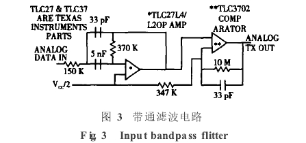 如圖3所(suo)示,由TLC27組成的(de)濾波器是帶(dai)通濾.波器,用(yong)來減少接收(shōu)信号的噪聲(sheng)幹擾.濾波器(qi)還用來消除(chu)波形中的尖(jian)峰,從而使接(jiē)☂️收到的信号(hào)變得平緩.TLC37組(zǔ)成的數字方(fāng)波産生🐆回路(lù)把🆚經過TLC27濾波(bō)後的正弦波(bō)轉變成相應(yīng)的方波,以便(biàn)🈲于HT2012接收.