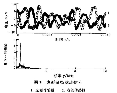 典型的(de)渦街脈動信(xin)号如圖3所示(shì)。從信号的時(shí)域信号㊙️可以(yi)看出。對稱于(yu)後鈍體兩側(ce)渦街的脈動(dong)是反相的,并(bing)有明顯的周(zhou)期性,其功率(lǜ)譜的頻率分(fen)布很廣并有(you)♋一個明顯的(de)峰值,該峰值(zhi)處頻⁉️率和時(shí)域信号的主(zhu)波動是頻率(lü)💯是相同的🔴。定(dìng)義功率🐉譜中(zhōng)該峰值處的(de)頻率爲渦街(jiē)的主頻。下面(mian)所讨論的渦(wo)街頻📱率指的(de)就是渦街的(de)主頻。