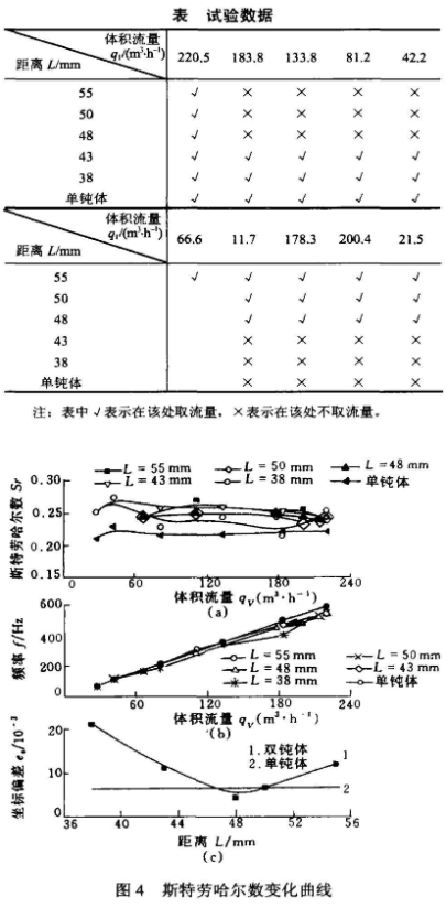 流(liu)量的選取不(bú)少于5個點,并(bìng)通過流量不(bu)完全相同的(de)選取🧑🏽🤝🧑🏻來☎️達到(dao)覆蓋較多流(liu)量範圍的目(mù)的。圖4a爲試驗(yàn)所得的各組(zǔ)‼️雙鈍體和單(dān)鈍體斯特勞(láo)哈爾數;圖4b是(shì)流量和渦街(jie)頻率的關系(xi)曲線:圖4c爲各(gè)組雙鈍體和(hé)單鈍體斯特(te)勞哈爾數标(biāo)準偏差曲線(xiàn)。