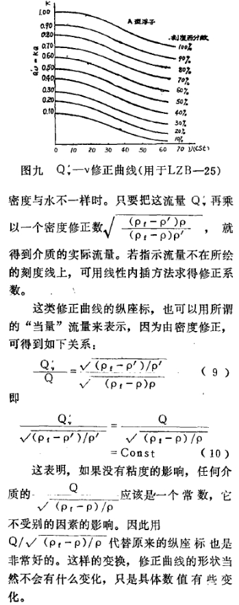 如(ru)果粘性介(jie),質的密度(dù)與水是一(yī)樣的,那就(jiù)無需進行(hang)密度修正(zhèng),可以将得(de)到的流量(liàng)直接描繪(hui)在曲線圖(tu)上。此類修(xiū)正曲線見(jiàn)圖九。
