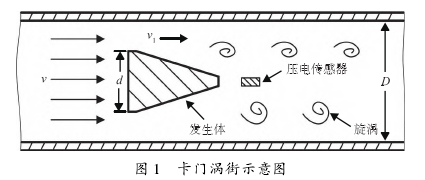 渦街流(liu)量計作(zuo)爲一種(zhǒng)振動型(xing)流量計(jì),具有應(ying)用範圍(wei)廣、測量(liang)介質多(duō)耐高溫(wen)、耐高壓(yā)等優點(diǎn),具有廣(guǎng)闊的發(fa)展前景(jing)。渦街流(liú)量計利(li)用流體(ti)振動的(de)原理來(lai)測量流(liú)量。當流(liú)體通過(guò)一個垂(chuí)直放置(zhi)的非流(liú)線型旋(xuán)渦發生(shēng)體時,發(fā)生體兩(liang)側會産(chan)生兩排(pai)交錯排(pái)列的旋(xuan)渦,被稱(chēng)爲卡門(men)渦街,如(ru)圖1所示(shì)。發生體(tǐ)後方的(de)應力型(xing)壓電傳(chuan)感器将(jiang)旋渦産(chan)生的壓(yā)力差轉(zhuan)換爲電(diàn)荷信号(hào)。電荷信(xin)号的變(bian)化頻率(lü)與旋渦(wō)的産生(sheng)頻率-緻(zhì)。