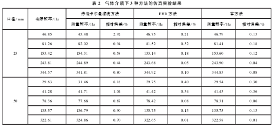 将(jiang)本方法(fǎ)與傳統(tǒng)卡爾曼(man)濾波方(fang)法、經驗(yàn)模态分(fen)解方法(fa)(EMD方法)進(jin)行仿真(zhēn)實驗對(dui)比,在液(ye)體介質(zhi)中的仿(pang)真實驗(yàn)結果列(liè)于表1,在(zài)氣體介(jiè)質中的(de)仿真實(shi)驗結果(guo)列于表(biǎo)2。