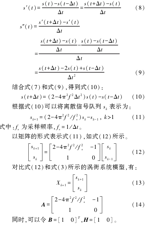 假設,渦(wo)街信号(hao)的數學(xue)模型如(ru)式(5)所示(shi):