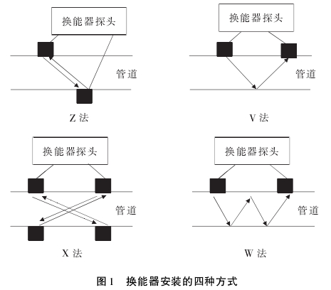 換能器安裝方(fāng)式通常有Z法、V法(fǎ)、X法、W法等,應根據(jù)使用說♌明書并(bìng)結合現場條件(jiàn)選擇最恰當的(de)安裝方式🙇🏻,換能(néng)器安裝方式示(shi)意圖如圖1所示(shi)。例如,當流體平(píng)行于管軸流動(dong)時,通常可采用(yong)Z法;當流體流動(dong)方向與管軸不(bú)平行時,可🌈采用(yòng)V法或者X法;當管(guan)⭐道長度有💃限時(shi),使用X法可獲得(de)較好🈲的精度等(deng)。目前,可測的最(zuì)小管徑爲φ25mm,采用(yòng)V法或W法以擴大(da)聲程長度,增加(jia)順逆向聲傳播(bō)時間。而🤩乙法一(yi)🍓般用于φ50mm以上管(guan)道。