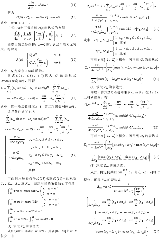 将(jiang)以上參數代(dai)入式(18),Dm及Fmn有關(guan)項都将爲零(ling),代入Cm表達式(shi)(21)及Emn的表達式(shì)(24),并進一步化(huà)簡後,可得Green函(hán)數G的表達式(shì)爲