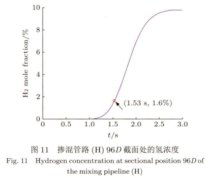 刻(ke)氫氣摩爾分(fen)數爲0,表示氫(qīng)氣還沒擴散(sàn)至指定位置(zhì)。如圖🔴11摻混裝(zhuang)置H爲最佳摻(chan)混模型,在96D截(jié)面處,氫氣摩(mó)爾分數随注(zhu)入時間,由0到(dao)9.8%的變化過程(chéng)。氫氣流動擴(kuo)散1.53s後,初次達(da)到摻混均勻(yun)時,在96D截面☎️處(chu)瞬時氫氣♍摩(mó)爾分數爲1.6%。天(tian)然氣摻氫混(hun)摻管路E,F,G,H