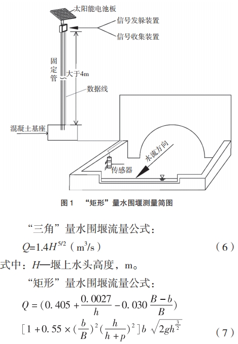 在(zài)傳統“三角(或矩(jǔ)形)”量水圍堰[7]内(nèi)安裝電感傳感(gan)器,電🛀感傳感器(qì)将其四周水位(wèi)産生的壓力及(ji)流速轉化爲電(diàn)流⭕或電壓,通過(guò)電纜數據線傳(chuán)輸至控制箱💚,再(zài)通過信号發射(she)裝置發送至信(xin)号收集裝置,最(zui)終可直接讀取(qǔ)排水瞬時流量(liang)和累計流量。“矩(jǔ)形”量水❗圍堰測(cè)量原理見圖1,流(liú)量🍓計算公式如(rú)下: