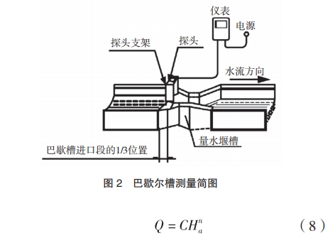 安裝于(yu)巴歇爾槽上遊(you)收縮段,巴歇爾(er)槽把流量轉成(chéng)液位,通✔️過✔️測量(liang)明渠流量計下(xia)方巴歇爾槽收(shou)縮段内㊙️水流的(de)液位,再🌈根據相(xiàng)應巴歇爾槽的(de)水位與流量的(de)關系,通過計算(suan)公式轉換爲排(pái)水流量。巴歇爾(ěr)槽測量原理見(jian)圖2,流量計算公(gong)式如下: