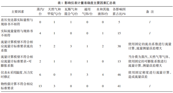 通過對(duì)現場儀(yí)表核查(cha)、校準及(ji)對數據(ju)的分析(xi),确認了(le)影❗響儀(yí)㊙️表計量(liàng)精度的(de)主要因(yīn)素,彙總(zong)數據見(jian)表✍️1。