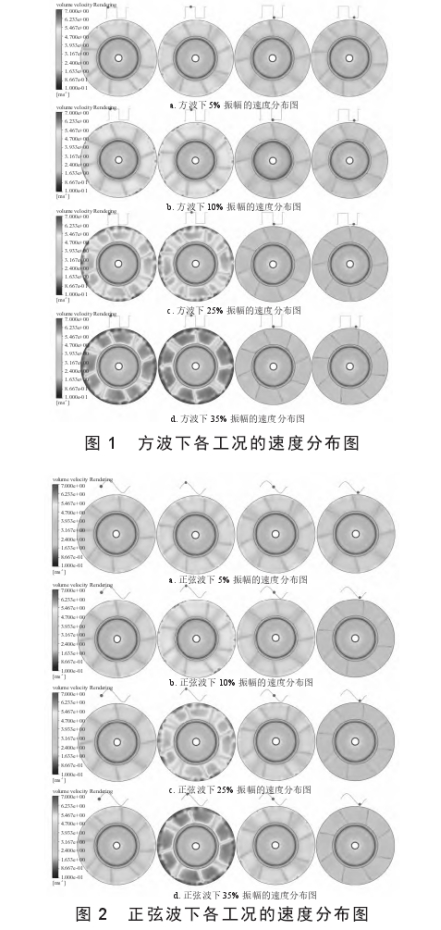 對比兩(liǎng)種波形(xing)的速度(du)分布圖(tú),同振幅(fú)下的波(bō)峰時,方(fāng)🛀波工況(kuàng)下❓流場(chǎng)速度略(luè)大于正(zhèng)弦波工(gōng)況,且方(fang)波的高(gao)流速持(chí)續時間(jiān)比正弦(xián)波的高(gāo)流速持(chi)續時間(jian)❤️長。