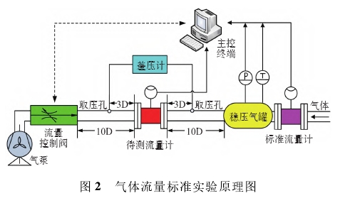 測試采用(yòng)标準表法氣(qì)體流量标準(zhǔn)裝置。實驗裝(zhuang)置主要由羅(luó)茨流量計、氣(qi)體渦輪流量(liàng)計、穩壓氣罐(guan)、氣動閥門、氣(qi)泵和控制系(xi)統等組成,如(ru)圖2所示。實驗(yan)通過遠程操(cāo)作PLC設備,調節(jie)氣動閥門的(de)開度,實現對(dui)氣體體積流(liu)量的控制。羅(luó)茨流量計作(zuo)爲标準表,其(qí)工作量程爲(wei)0~250m3/h,流量控制精(jing)度爲0.5級。氣體(ti)渦輪流量計(jì)作爲待測流(liú)量計,其測量(liàng)精度等級爲(wei)1級,工作量程(chéng)爲13m3/h~250m3/h,量程比爲(wèi)20:1。差壓計的兩(liǎng)個.測壓口分(fèn)别安裝在待(dai)測流量計的(de)前後直管段(duan)3D處,其量程範(fàn)圍爲土3000Pa.測量(liang)精度等級爲(wei)1級。氣泵與氣(qì)動閥門相連(lian),能夠産生相(xiang)對穩定的負(fu)壓。根據國家(jiā)計量檢定标(biāo)準,氣體渦輪(lun)流量計需檢(jiǎn)定13m3/h、50m3/h、100m3/h和250m3/h等特征(zheng)流量點。每個(ge)流量點進行(hang)多次測量,實(shi)驗結果得到(dào)标準表和被(bèi)測流量計的(de)壓力損失、脈(mo)沖數、體積流(liú)量以及單流(liu)量點的測量(liàng)時間,數據處(chu)理後得到儀(yí)表系數和最(zui)大示值誤差(chà)等指标,進而(er)評估氣體渦(wo)輪流量計的(de)計量性能。