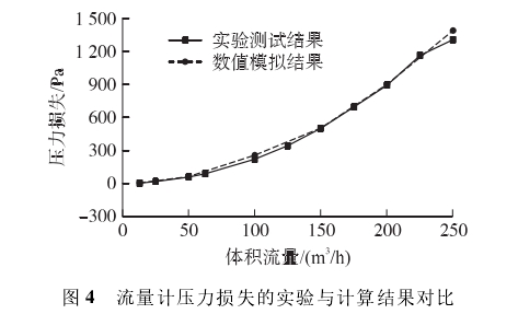 爲了(le)驗證模拟方(fang)法的可靠性(xìng),本文比較了(le)氣體渦輪流(liu)量計在13m3/h~250m3/h範圍(wéi)内11個流量點(dian)的壓力損失(shi),這些流量點(diǎn)包含了國家(jiā)計量檢定标(biao)準的4個特征(zheng)流量點,符合(he)實際的流量(liàng)檢測要求。由(you)圖4可知:在全(quán)量程範圍内(nei),流量計壓力(lì)損失的模拟(ni)結果與實驗(yan)結果十分吻(wěn)合,誤差僅在(zài)0~6%範圍内波動(dong),證實了所采(cai)用的數值模(mó)拟方法和實(shí)驗測試方法(fa)的可靠性和(hé)準确性,爲後(hòu)面流量計的(de)結構改進和(hé)性能優化奠(diàn)定了基礎。