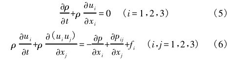 式(shì)中:xi,xi爲空間坐(zuò)标分量,ui,uj爲流(liu)體流動速度(du)分量:p爲靜壓(yā),pij爲應力張量(liang)ƒi爲體積力分(fèn)量。