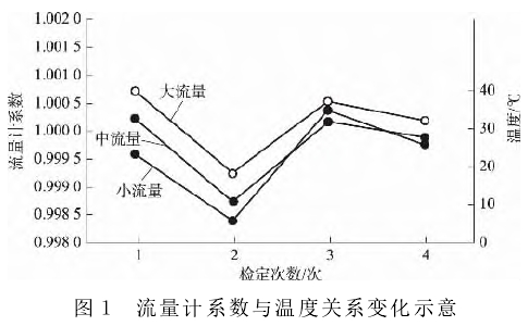 檢(jian)定過程(cheng)中,一般(bān)按被檢(jiǎn)流量計(ji)額定流(liu)量的70%,50%,30%設(shè)爲🤩大、中(zhong)、小流量(liang)檢定點(dian),通過對(duì)流量計(jì)在線采(cǎi)集的數(shu)據進❓行(háng)分析。選(xuan)用其中(zhōng)變化明(ming)顯的4次(ci)檢定流(liu)量數據(ju),流量計(jì)系數❗與(yǔ)溫度🔞關(guan)系變化(hua)如圖1所(suǒ)示。4次檢(jiǎn)定數據(ju)出現規(guī)律性的(de)變化,其(qí)變化趨(qu)勢和檢(jian)定油溫(wēn)🐆變化趨(qu)勢一緻(zhi),說明原(yuan)油溫度(dù)的高低(di)決定了(le)流量計(jì)系數的(de)大✉️小。